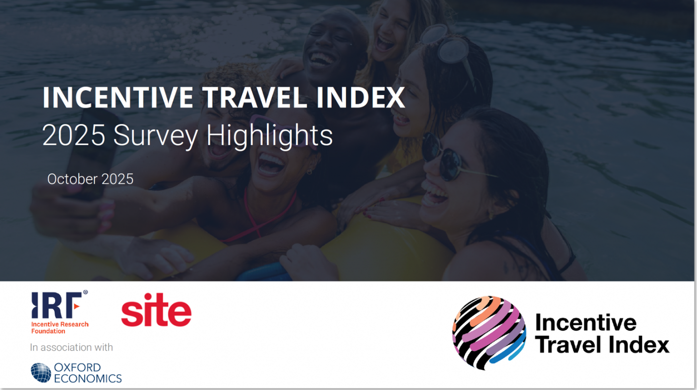 A joint initiative of the Incentive Research Foundation (IRF) and Society for Incentive Travel Excellence (SITE), the Incentive Travel Index (ITI) is the business events industry’s most authoritative study of the global incentive travel market and its impact on corporations, agencies and the supply chain in destinations.